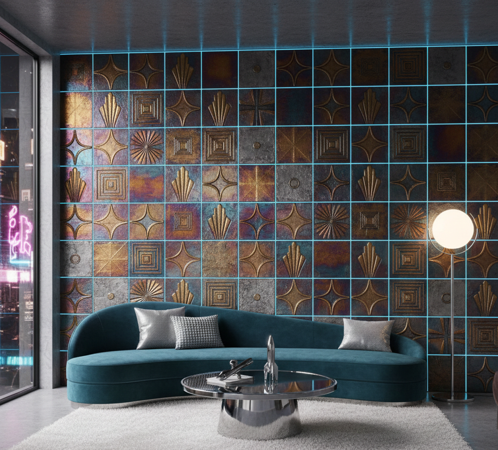 El retro-futurismo en porcelana se manifiesta mediante la colisión de dos mundos. Por un lado, rescatamos la calidez de los acabados y las geometrías que marcaron una época; por otro, aplicamos diseños audaces y calidades fotográficas que parecen sacados de una visión del mañana. El resultado es un revestimiento que no solo cubre paredes, sino que cuenta una historia de evolución.